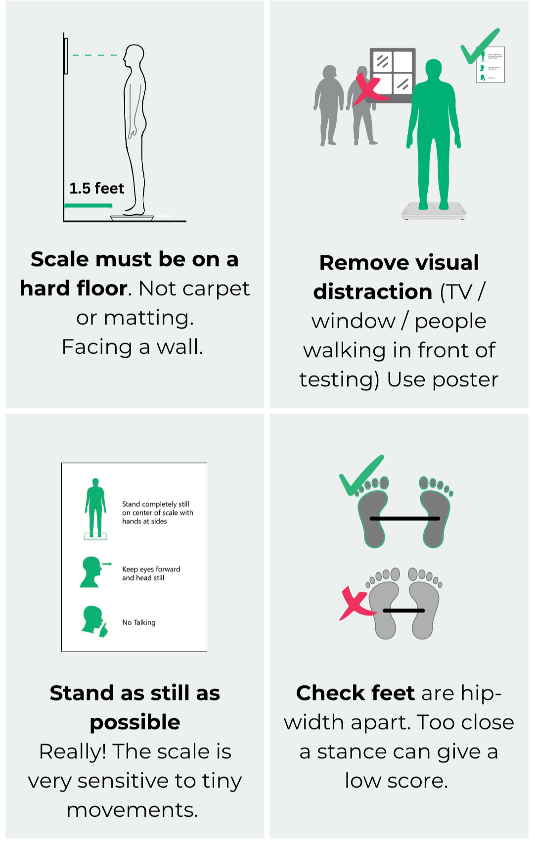 📄 The post test sheet explains what the result means, personal and environmental factors that affect balance and how it can change from one day to another.